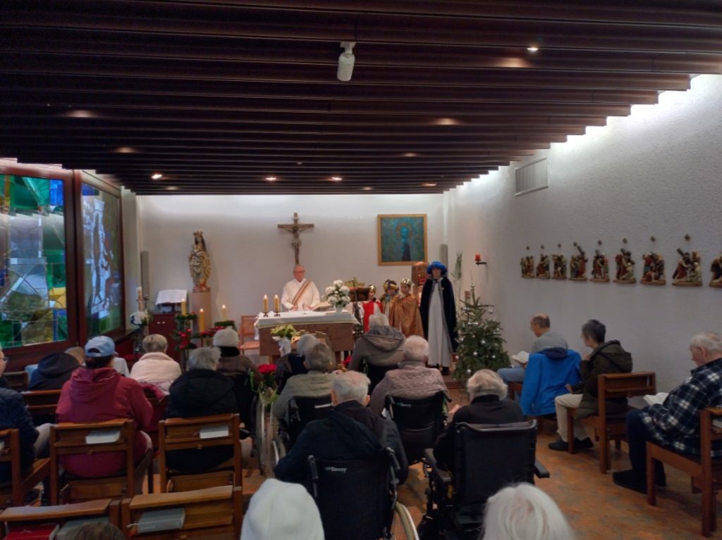 Heute Morgen trafen wir uns nochmals , um am Gottesdienst in der Kapelle der Barmherzigen Brüder teilzunehmen. Besonders die anwesenden Senioren und Seniorinnen freuten sich über die Segenssprüche und Lieder der Kinder und Jugendlichen, die auch hier mit Begeisterung aufgenommen wurden.